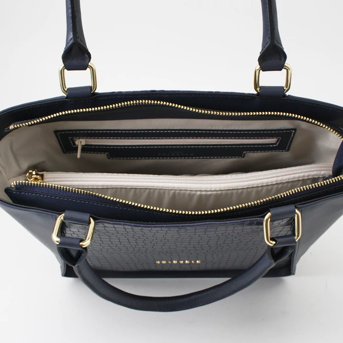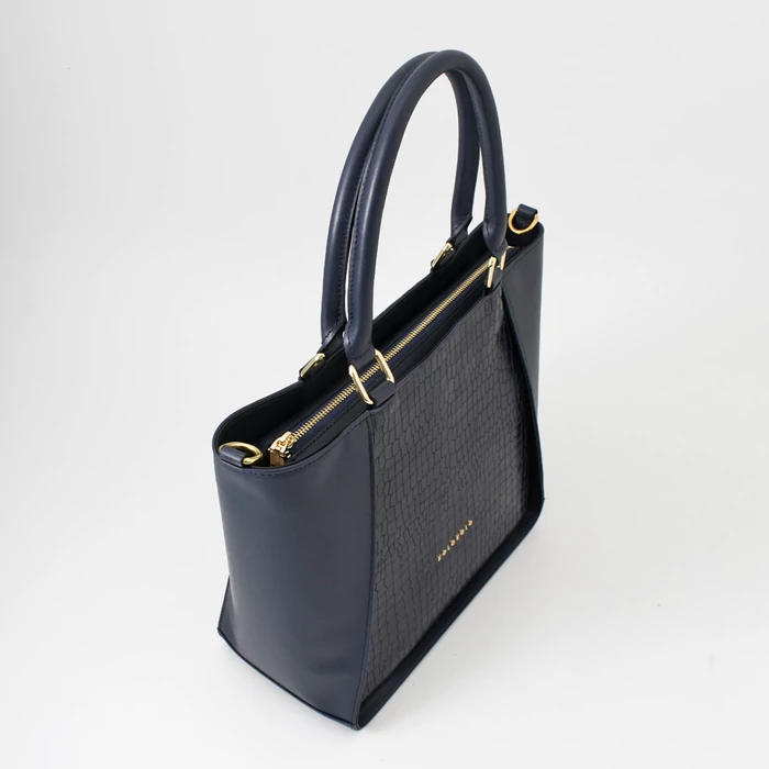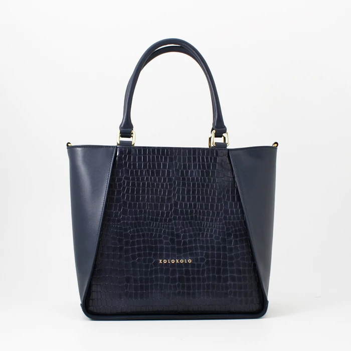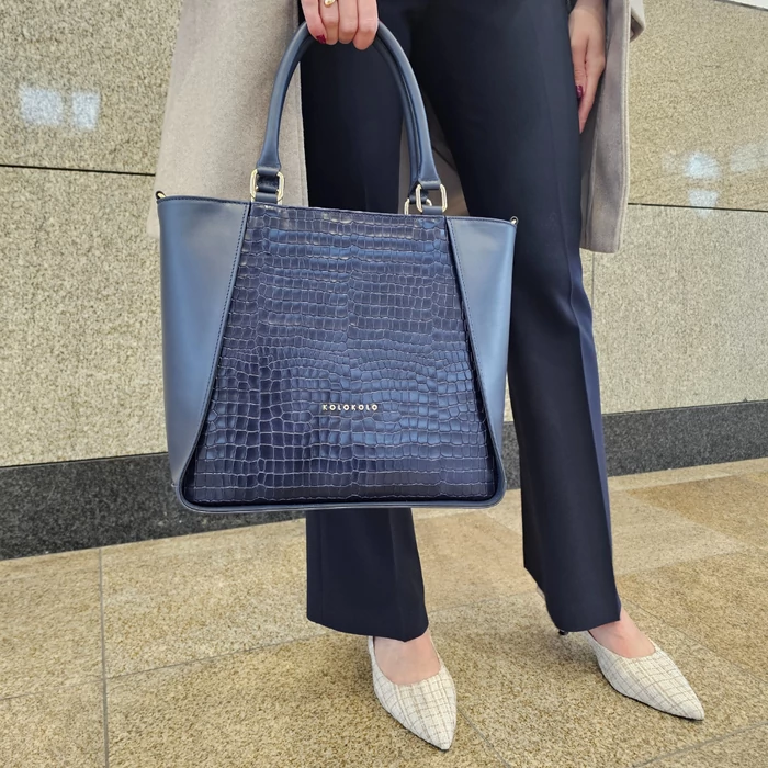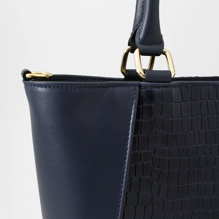Kifinomult elegancia és karakteres megjelenés egyetlen táskában. Ez a sötétkék valódi bőrtáska a klasszikus sima bőrt és a különleges krokó felületet ötvözi, így igazán egyedi és stílusos kiegészítő. Közepes méretének köszönhetően tökéletes választás mindennapi használatra, ugyanakkor elegáns megjelenése miatt alkalmi szettekhez is ideális. Kézben és vállon is kényelmesen hordható, praktikus belső tere pedig minden fontos dolgodnak helyet biztosít.